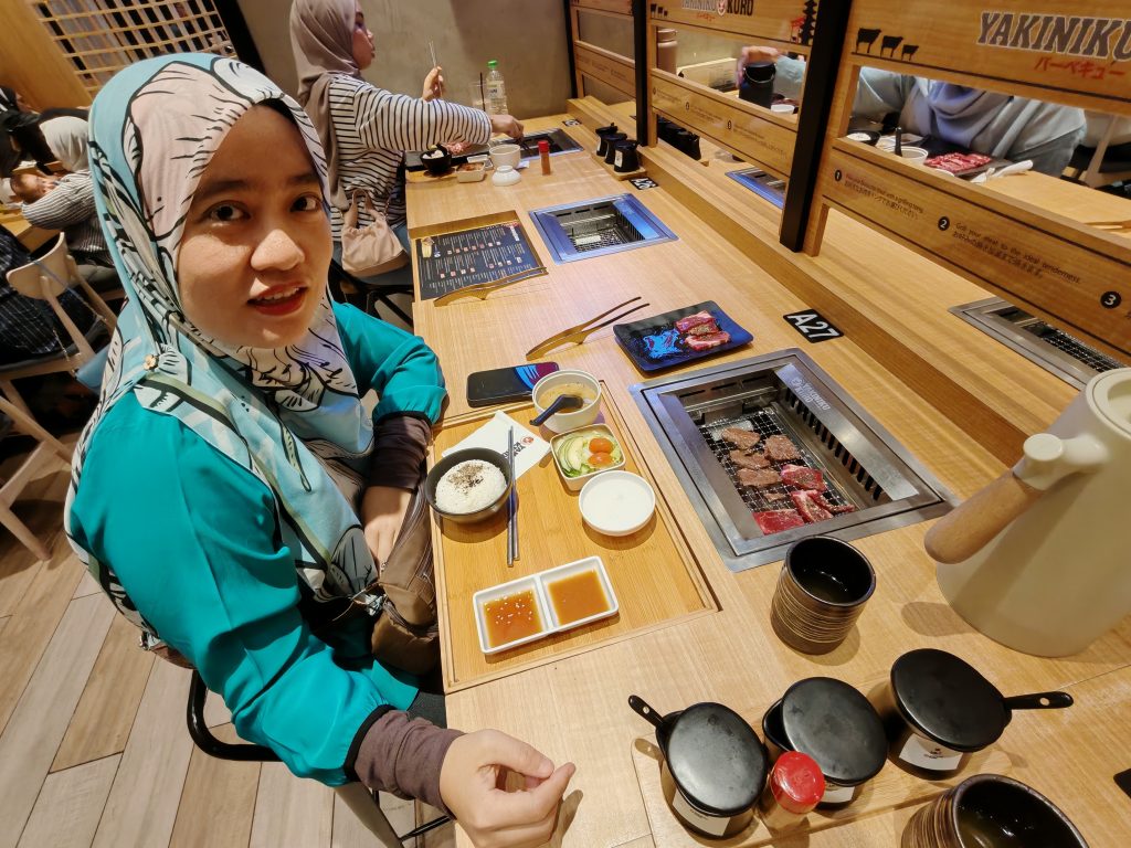 I thought, being the middle of the month, the crowd would be manageable. I was wrong. We arrived early, before 12, yet it was already packed. At the Yakiniku restaurant, it was full house. No proper dining table for us hence just individual benches. But, no big deal. We adapted.