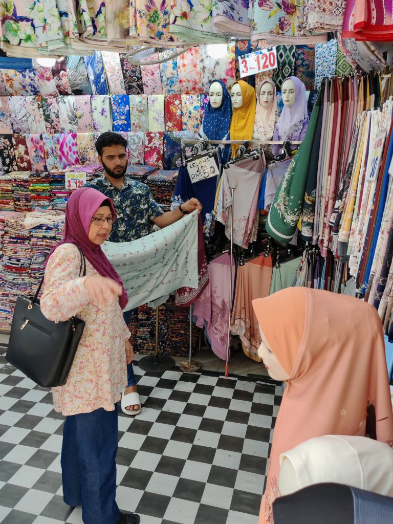 Since Sunday’s trip was interrupted, I brought them back to Jalan TAR again on Monday. This time, the sun was on our side, and the focus was on tudung shopping. If you’ve ever been to Jalan TAR, you’d know the options are endless, every style, every color, every design you can imagine. Mom, being the meticulous shopper that she is, took her time picking out the best ones. After a few rounds of browsing (and some serious decision-making), she happily left with a few tudungs.