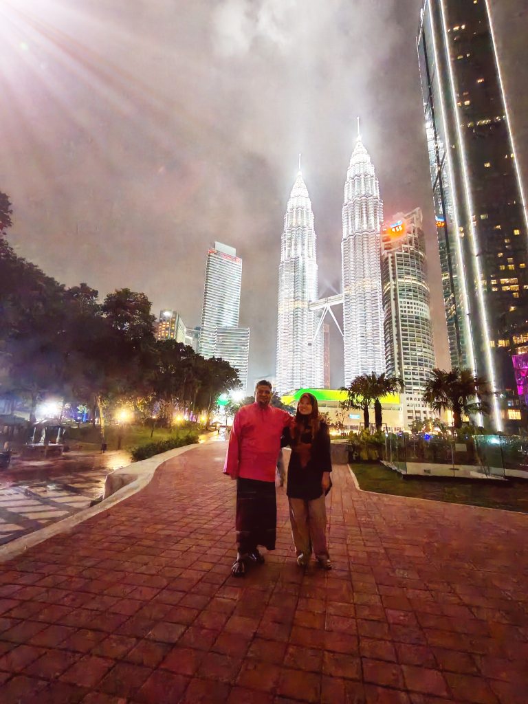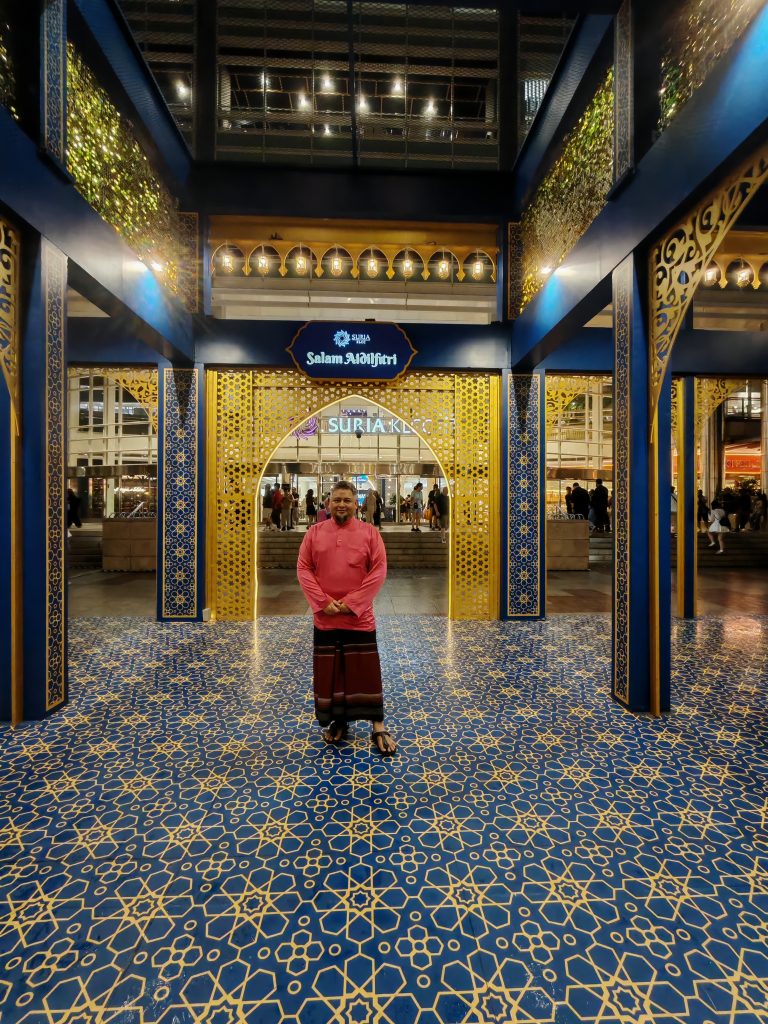 Jadi this year, we are Team Raya KL. At the very last day of Terawikh (yeah, we conclude awal), we perform our prayer dekat masjid KLCC. What is more KL then KLCC, kan. After Terawikh, with sarung and baju Melayu, kami ke Suria KLCC for moreh. Very feeling like local people. Turun eskalator, selak sikit kain takut tersangkut. Ambil gambar.